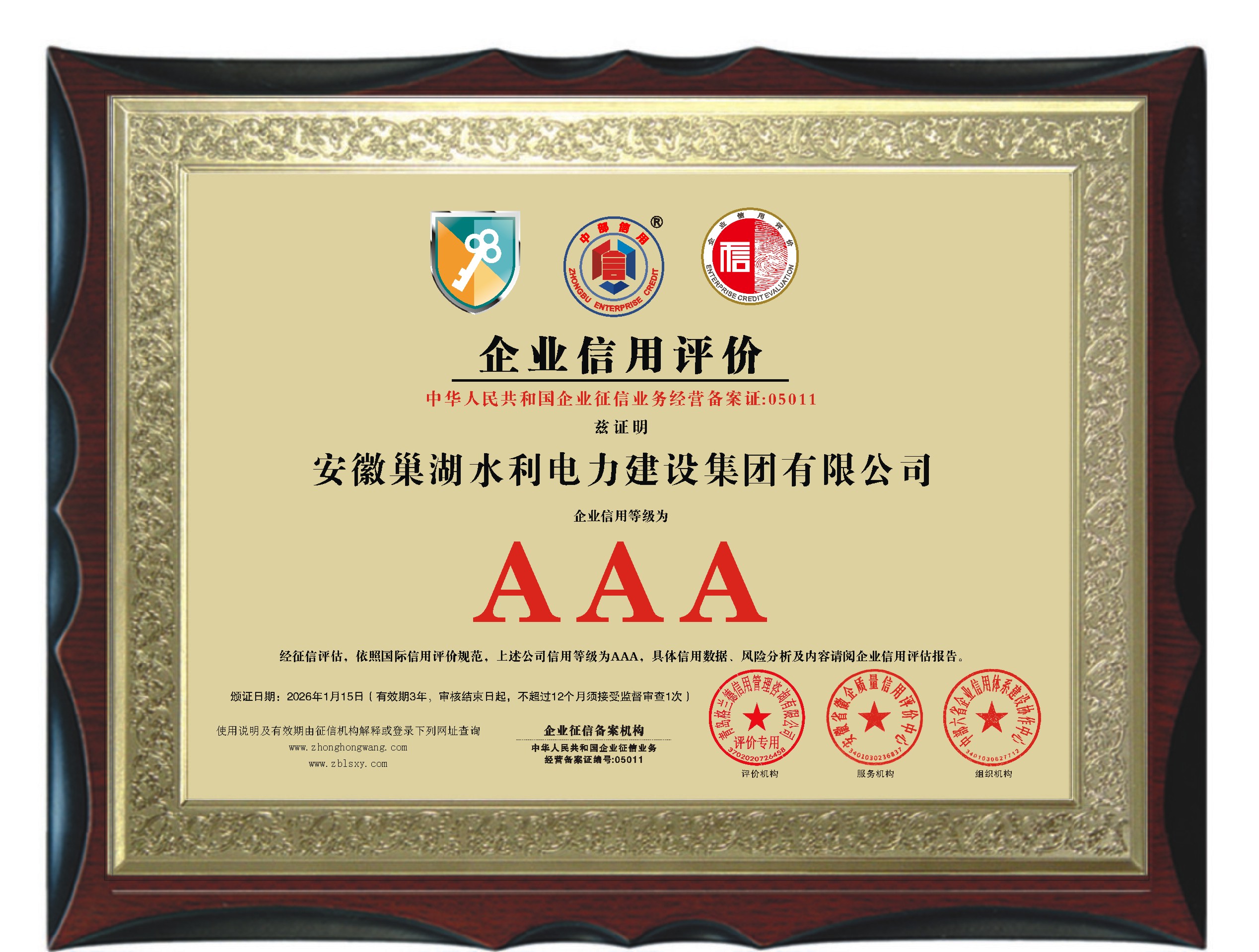 中部六省AAA級證書